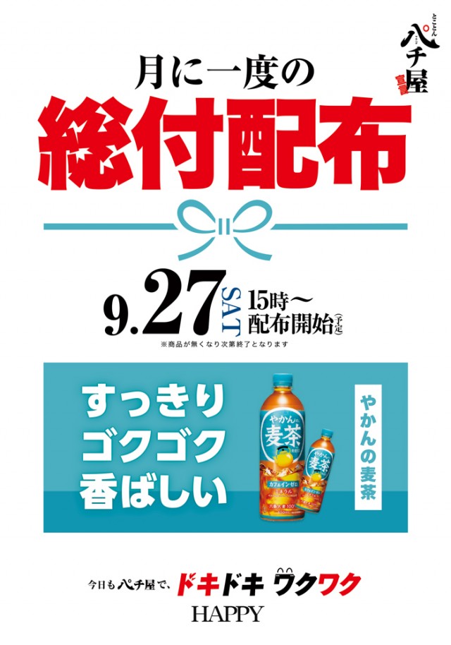 本日、9月27日は★総付け配布★是非お越しください。