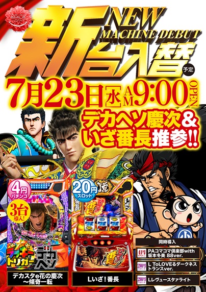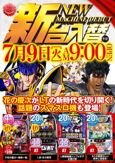 本日は新台入替初日 9:00開店!8:40~整理券配布!