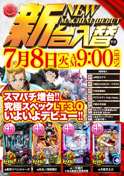 本日は新台入替初日 9:00開店!8:40~整理券配布!