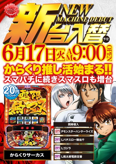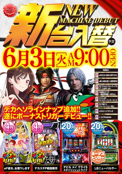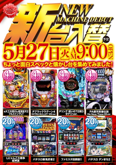 本日は新台入替初日 9:00開店!8:40~整理券配布!