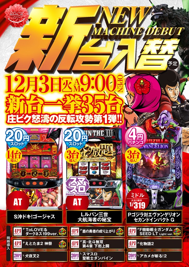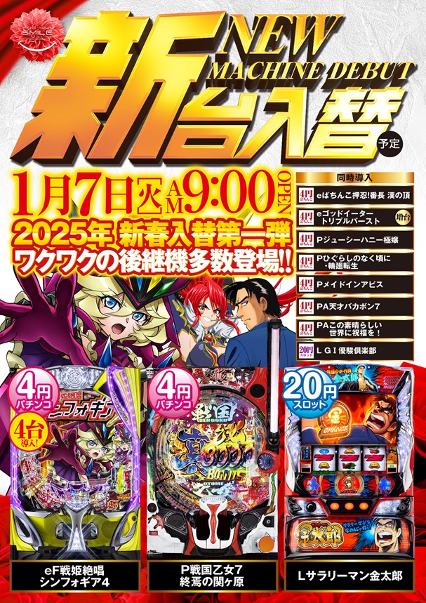 本日は新台入替初日 9:00開店!8:30~整理券配布