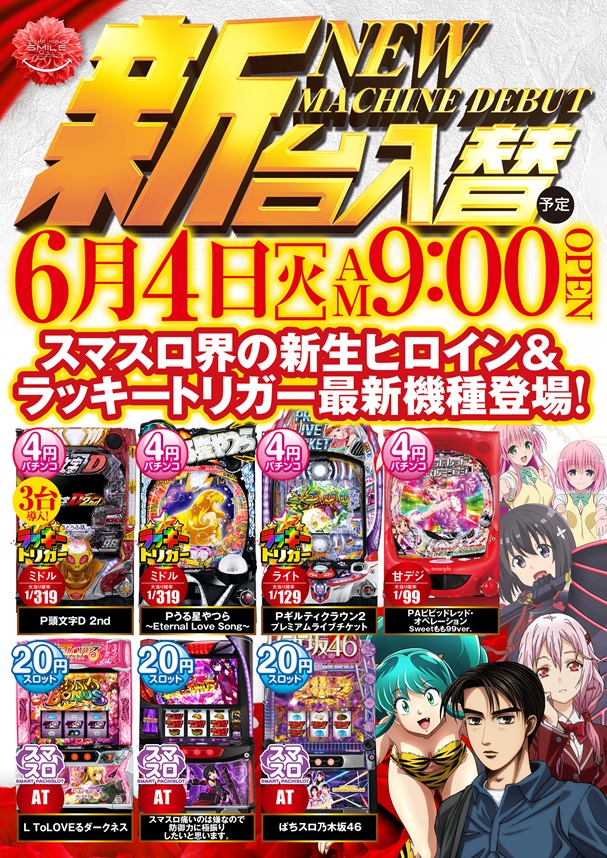 本日は新台入替初日 9:00開店!8:30~整理券配布