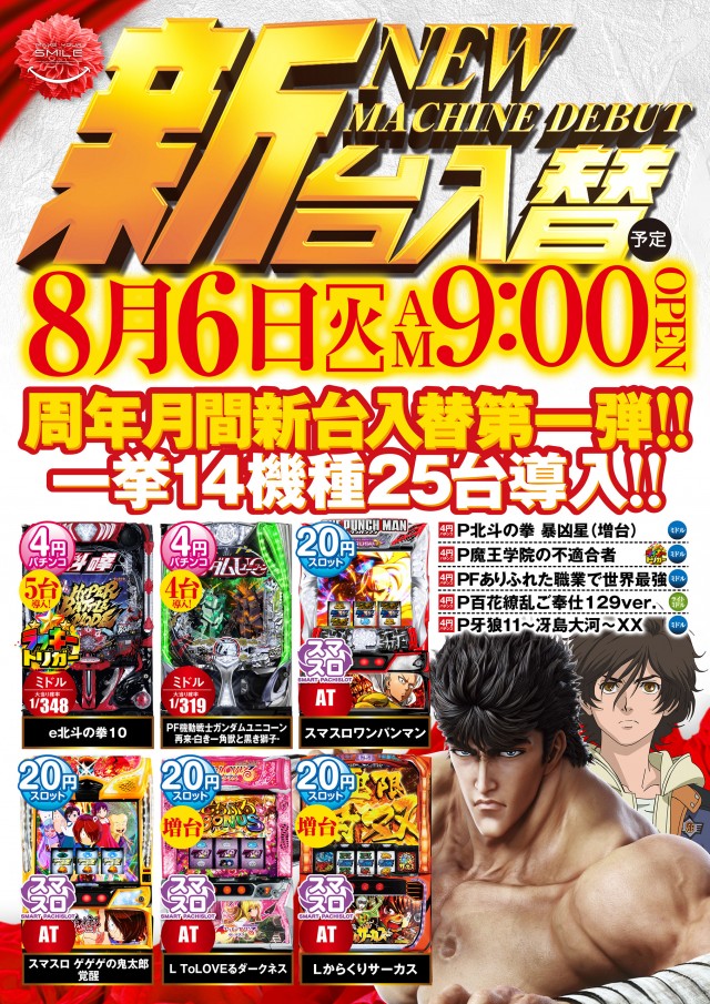 本日は新台入替初日 9:00開店!8:30~整理券配布
