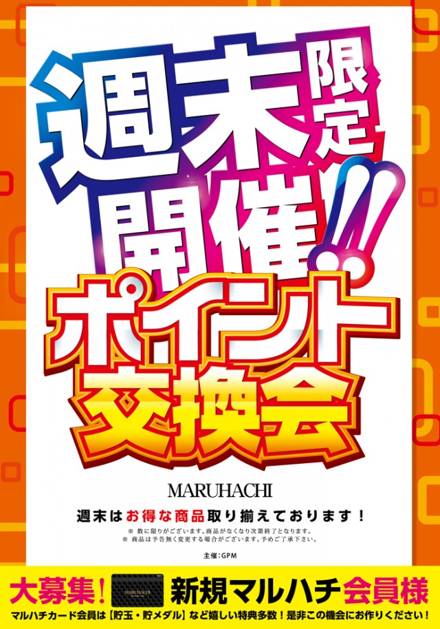 【明日のご案内】週末はポイント交換会!是非、お越し下さい!