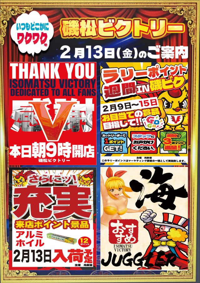 🌸②月①⑧日水曜日の御案内🌸磯松VICTORY🌸