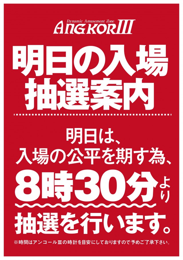 午前8時30分頃より立体駐車場側入口にて抽選を開始致します! |