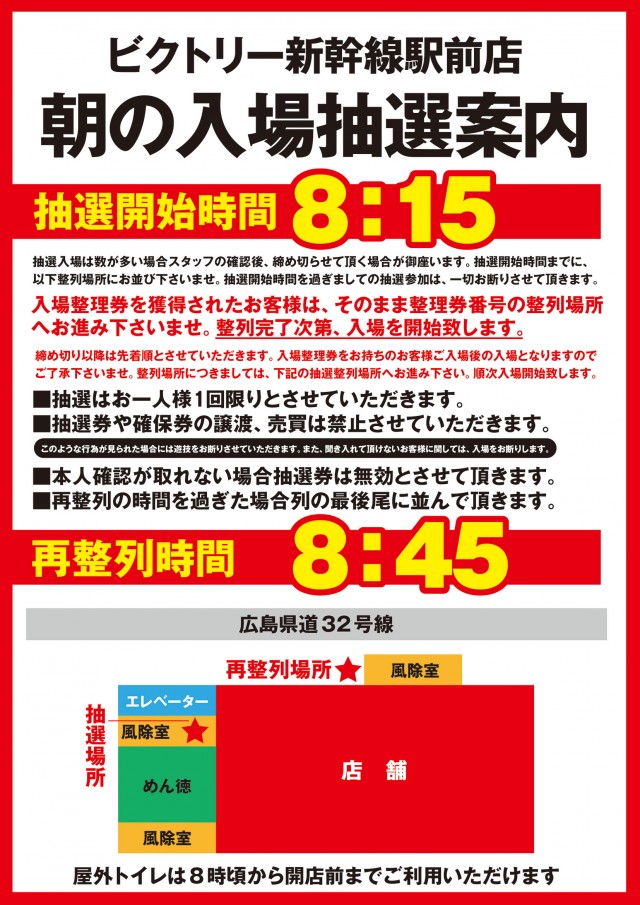 お客様の混雑が予想される場合に限り、抽選入場方式を取らせていただきます。 |