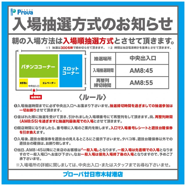 8時45分から抽選を開始致します。8時55分再整列です。 |