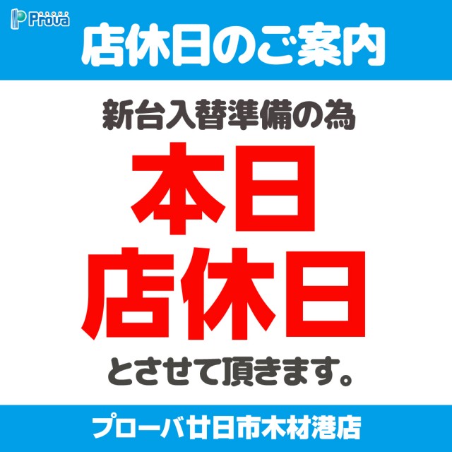 本日、新台入替準備の為お休みとさせていただきます。