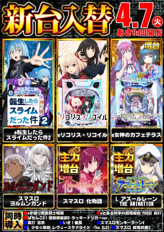🌟本日🌸 新 台 入 替 🌸🌟あさ9:00開店(予定)🌟