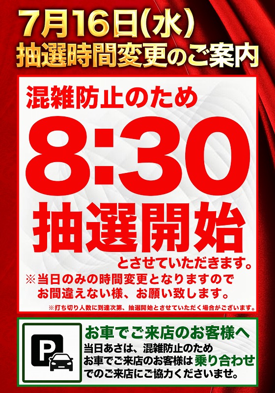 8:45より抽選開始です。8:45までに食堂前にお集まりください。 |