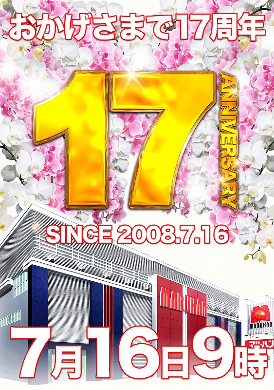 7月16日(水)おかげさまで17周年!ぜひご来店ください!