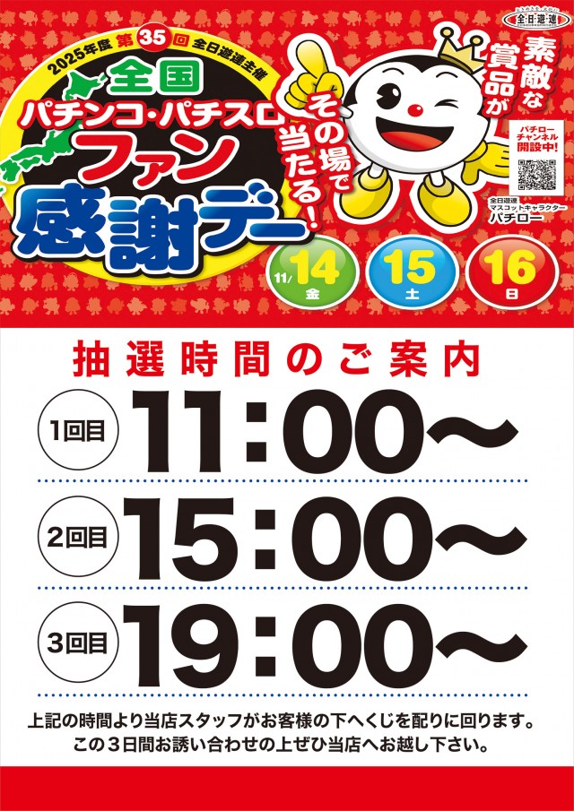 1位 11月1日(土) 2位 11月2日(日) 3位 11月16日(日)