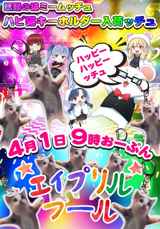 今日はエイプリルフールッチュ🐭ハピ猫キーホルダー入荷ッチュ🌈