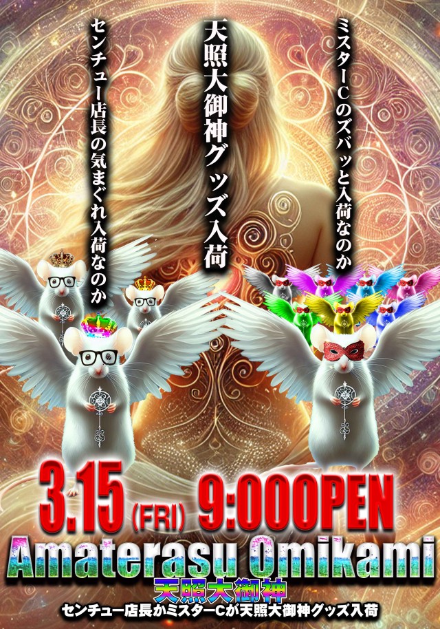 明日はセンチュー店長が❓ミスターCが❓天照大御神グッズ入荷🌈