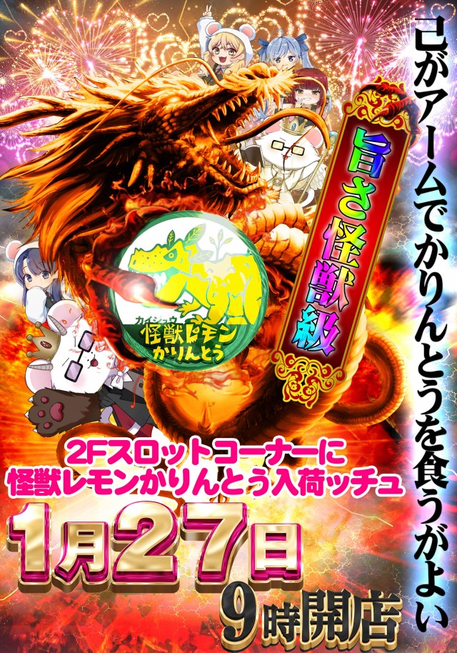 明日は怪獣級に旨い怪獣かりんとうをスロットコーナーに入荷🦖