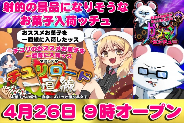一直線にチユリおススメお菓子入荷ッチュ