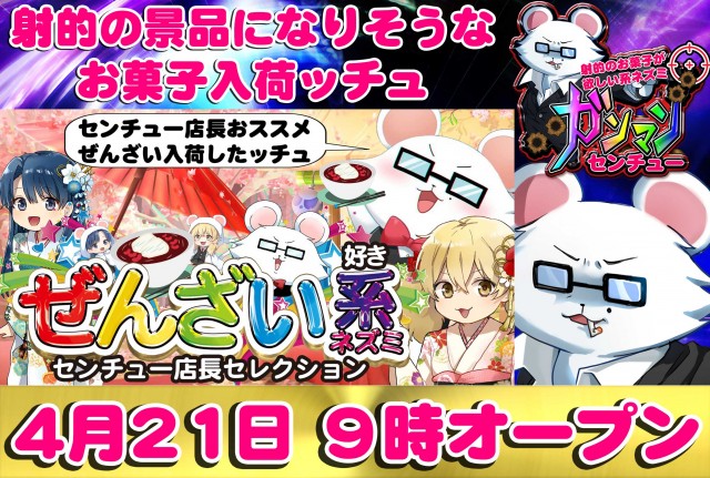 今日は【ぜんざい🍰】&【射的景品のお菓子🌈】入荷ッチュ🐭