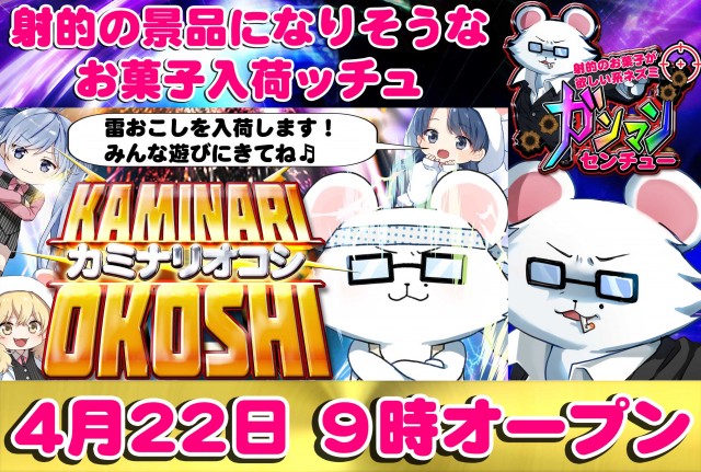 今日はお菓子【射的のお菓子🌈】&【雷おこし⚡】入荷ッチュ🐭