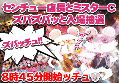 ミスターCのズバッチュ入場抽選この後8時45分開始ッチュ🐭👑