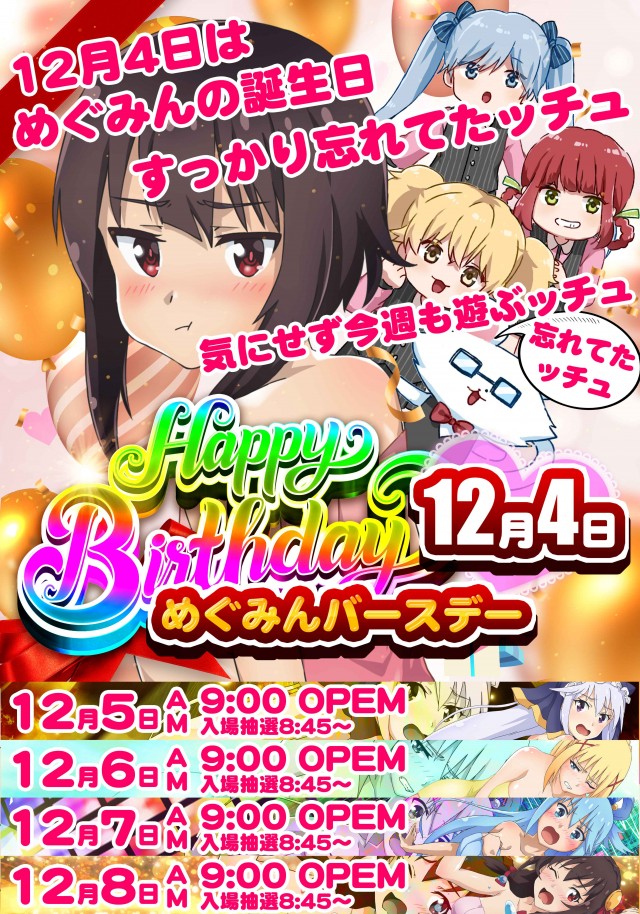 12月4日はめぐみんの誕生日ッチュ🎂忘れてたッチュ🐭