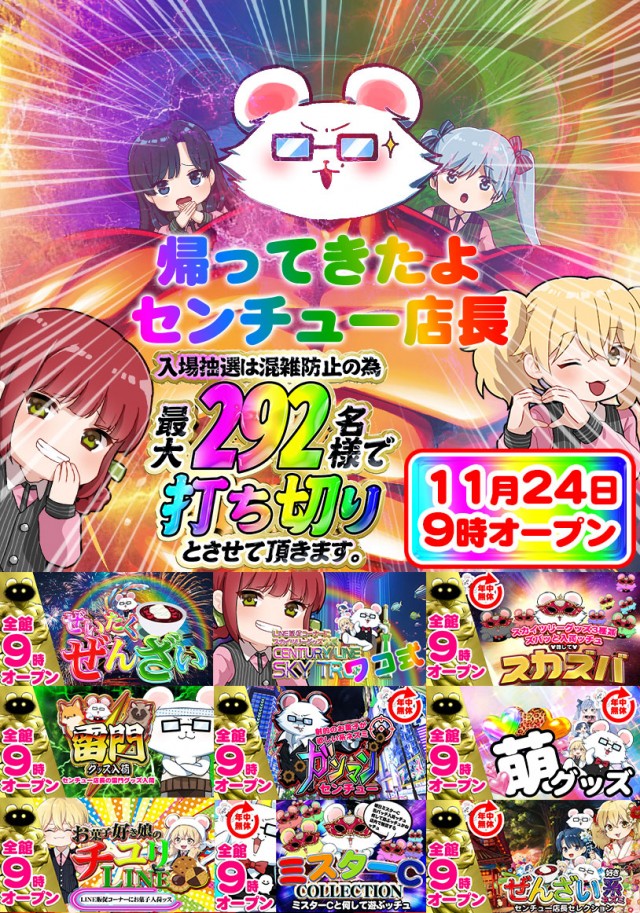 帰ってきたセンチュー店長。入場抽選292名で打ち切り!