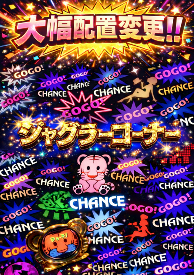 ジャグラーコーナー大幅配置変更!マイジャグ増台!