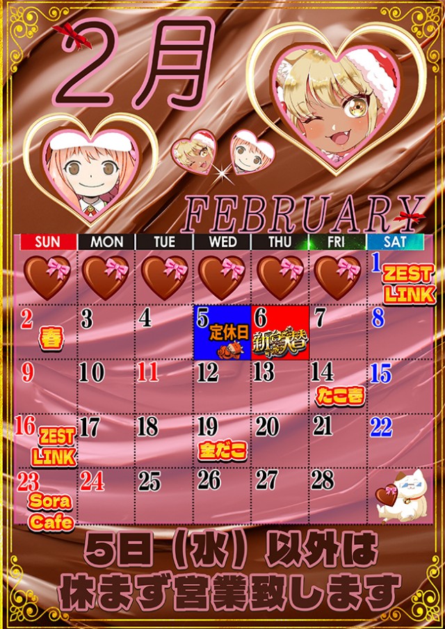 不定休【新台入替日は店休日】 |