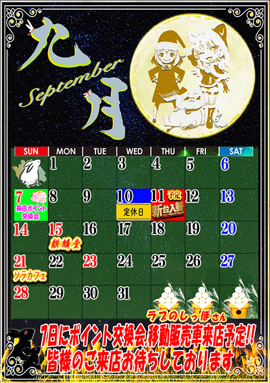 1位 10月26日(日) 2位 11月9日(日) 3位 10月17日(金)
