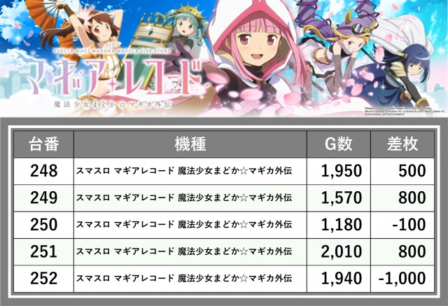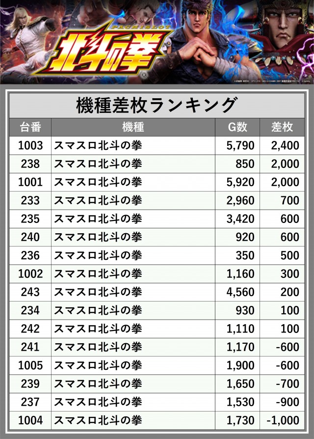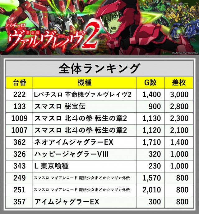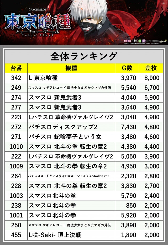 ※差枚数順に掲載しています