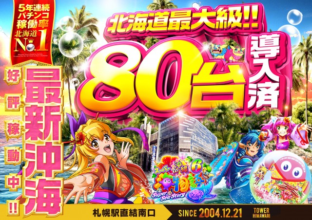 ひまわり札幌駅前タワー店 12月15日、北海道札幌市中央区にある「ひまわり札幌駅前タワー店」にて、REAL取材をおこなった。同店はパチンコ640台・パチスロ466台、合わせて1106台を設置する大型ホールで、取材時も大勢のプレイヤーが集まって…