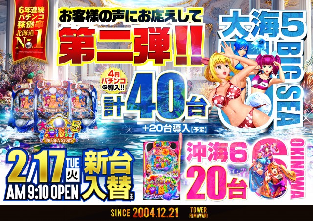2月17日(火) 9:10開店!新台入替(予定)!!