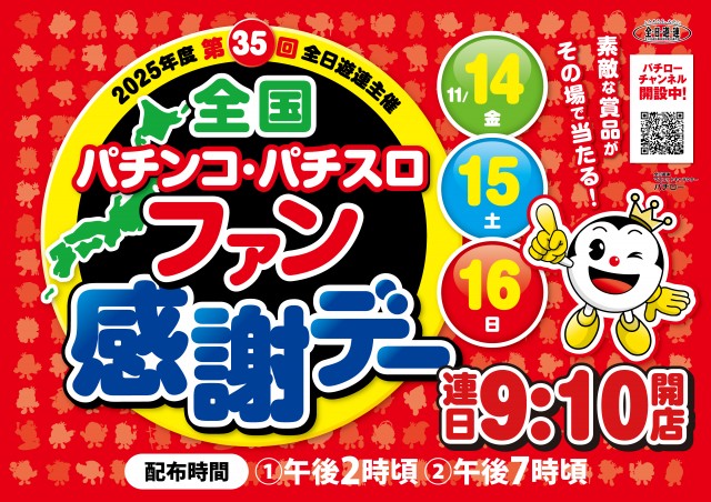 11月16日(日) 本日ファン感謝デー最終日 9:10開店!