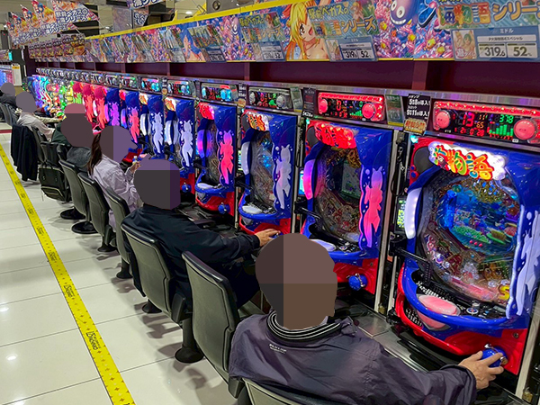 店内では貸し玉料金を問わず様々な機種で、心ゆくまで楽しむプレイヤーの姿が見られた。