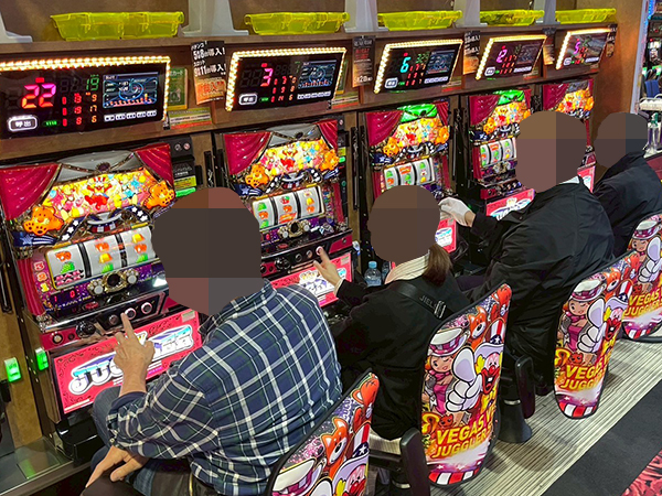 「マイジャグラーⅤ」や「ファンキージャグラー2」、「L ToLOVEるダークネス」では機種のポテンシャルをフルに活かすプレイヤーが見られ、実に華やかな光景が広がっていた。