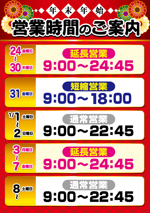 8時45分抽選開始 ※変更の場合は告知致します。 |