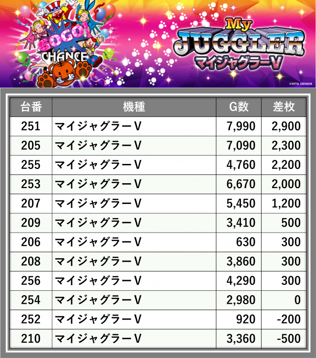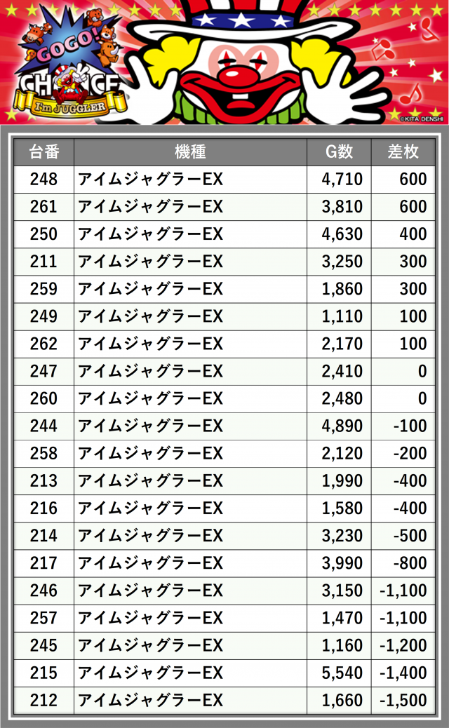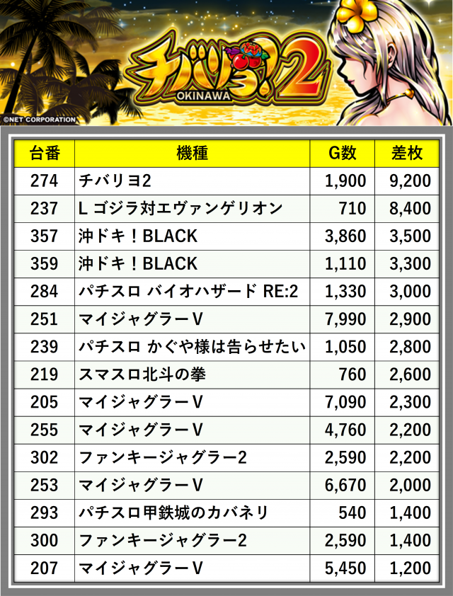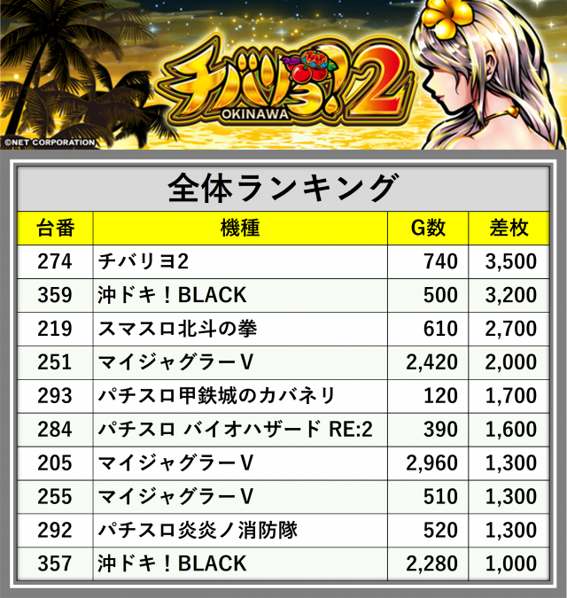 ※差枚数順に掲載しています