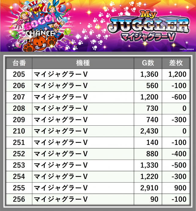 ※台番順に掲載しています
