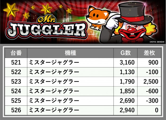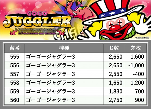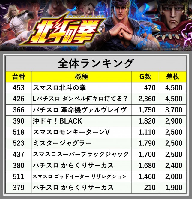厳選された取材対象機種をはじめ、その他スロット全体から好記録が飛び出した!プレイヤーが楽しんだ1日を下記データにて振り返ってみて欲しい。