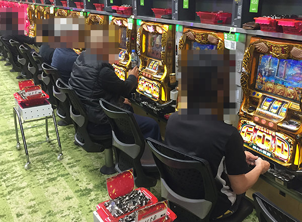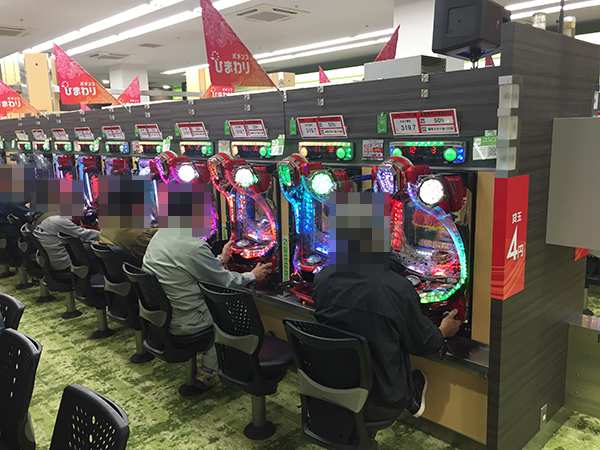 午後のパチスロをみてみると、「ミリオンゴッド-神々の凱旋-」が活況。機種の性能を引き出しているといったプレイヤーが多く、シマ全体に魅力的な光景が広がっていた。