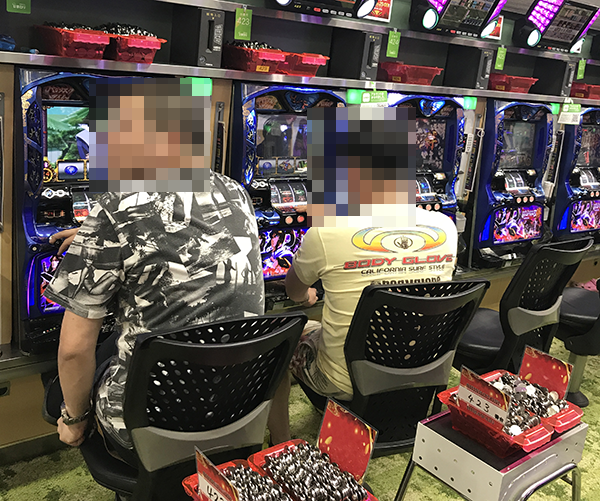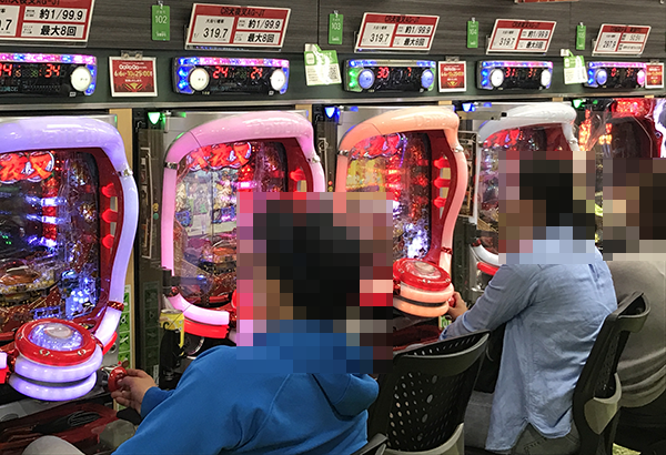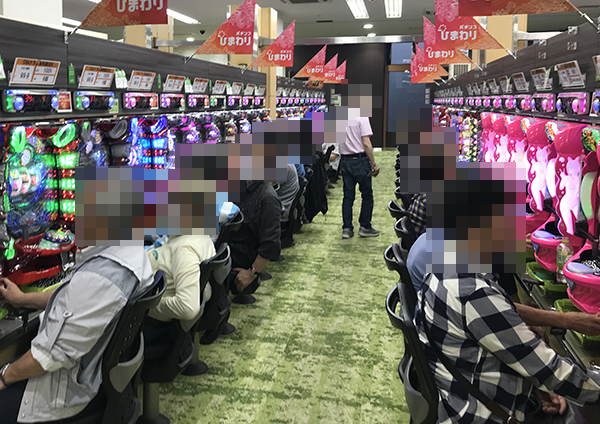 4円パチンコのなかで、とくに盛況であったのが海物語シリーズ。華麗なパフォーマンスを披露するプレイヤーの姿からは、充実感を得られていることも伝わってきた。