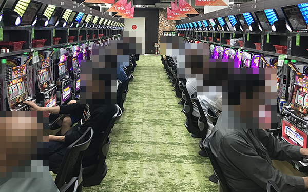 午後のパチスロをみると、「バジリスク~甲賀忍法帖~絆」や「マジカルハロウィン5」、「パチスロ モンスターハンター 月下雷鳴」などが好評。活躍をするプレイヤーが多く、シマ全体が明るいムードに包まれていた。