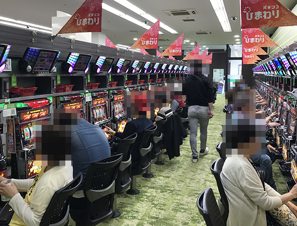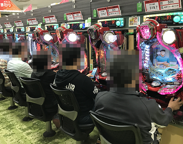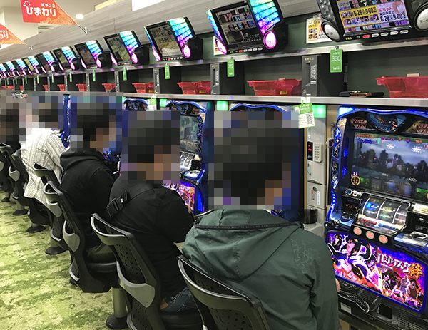 16時頃のパチスロをみると、「バジリスク~甲賀忍法帖~絆」が盛況。明るい笑みを浮かべながら遊技をおこなう姿も目立っており、にぎやかなムードが感じられた。