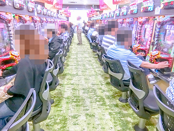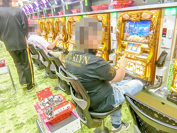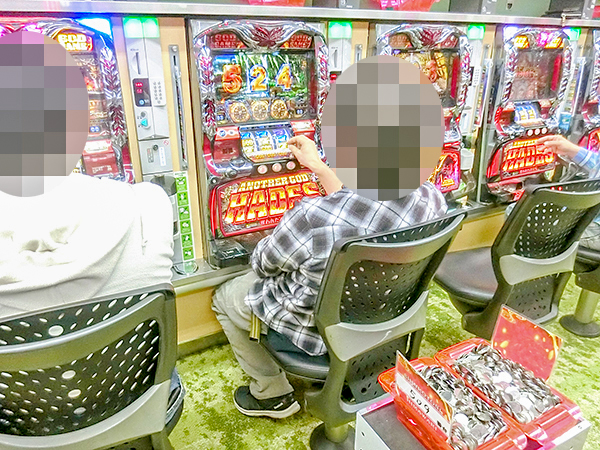 20円パチスロでは、「ミリオンゴッド-神々の凱旋-」や「アナザーゴッドハーデス-奪われたZEUSver.-」で機種のポテンシャルをフルに活かすプレイヤーが多く、シマ全体に華やかな光景が広がっていた。