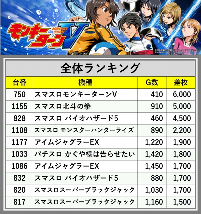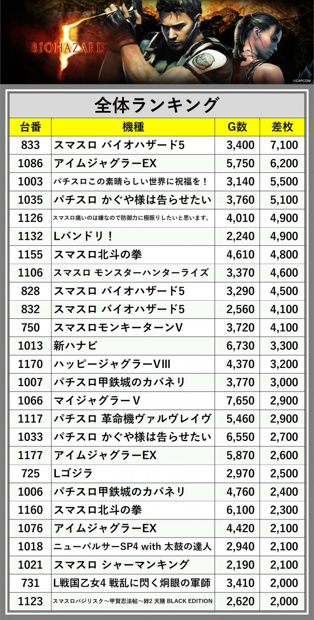 厳選された取材対象機種をはじめ、その他スロット全体から好記録が飛び出した!プレイヤーが楽しんだ1日を下記データにて振り返ってみて欲しい。