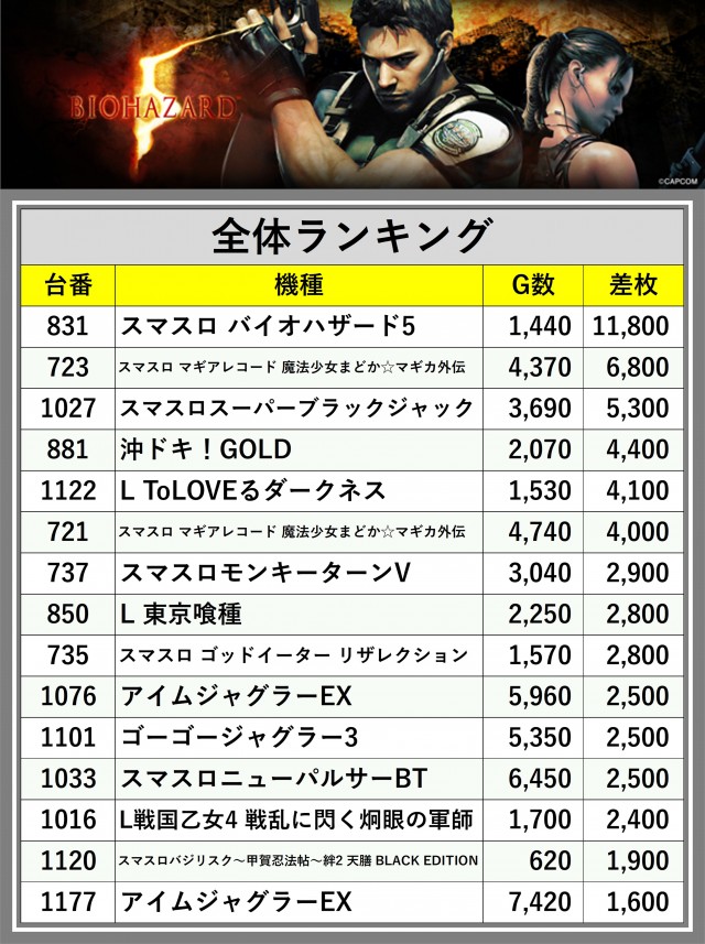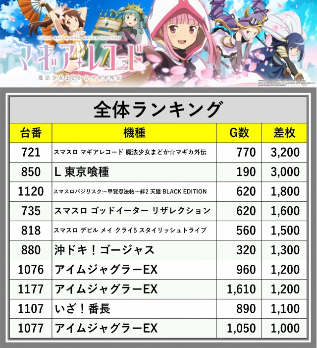 ※差枚数順に掲載しています