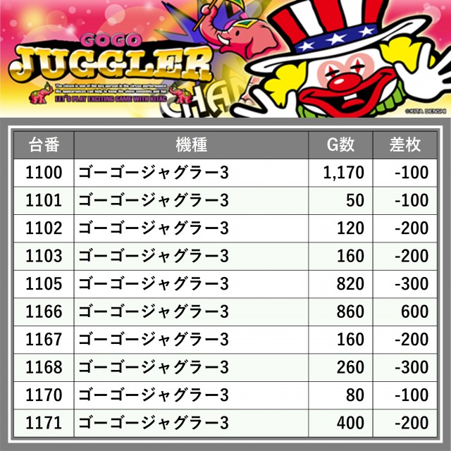 ※台番順に掲載しています