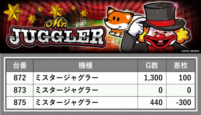 厳選された取材対象機種をはじめ、その他スロット全体から好記録が飛び出した!プレイヤーが楽しんだ1日を下記データにて振り返ってみて欲しい。