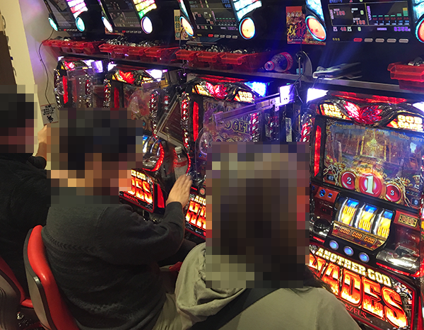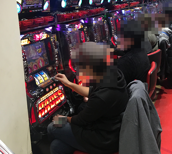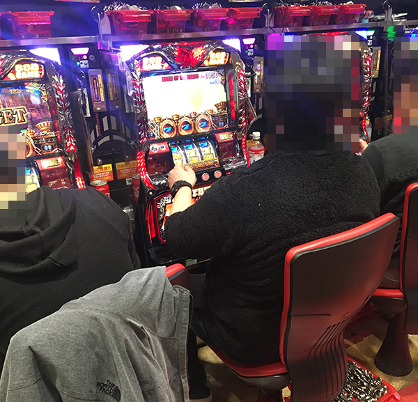 レバーを叩いてストップボタンを押すといった、ひとつひとつの行動が軽やか。うれしそうな表情で遊技をおこなっている姿からは、満足度の高さも伝わってきた。