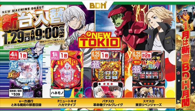 1月29日 新台入替 9時OPEN!!